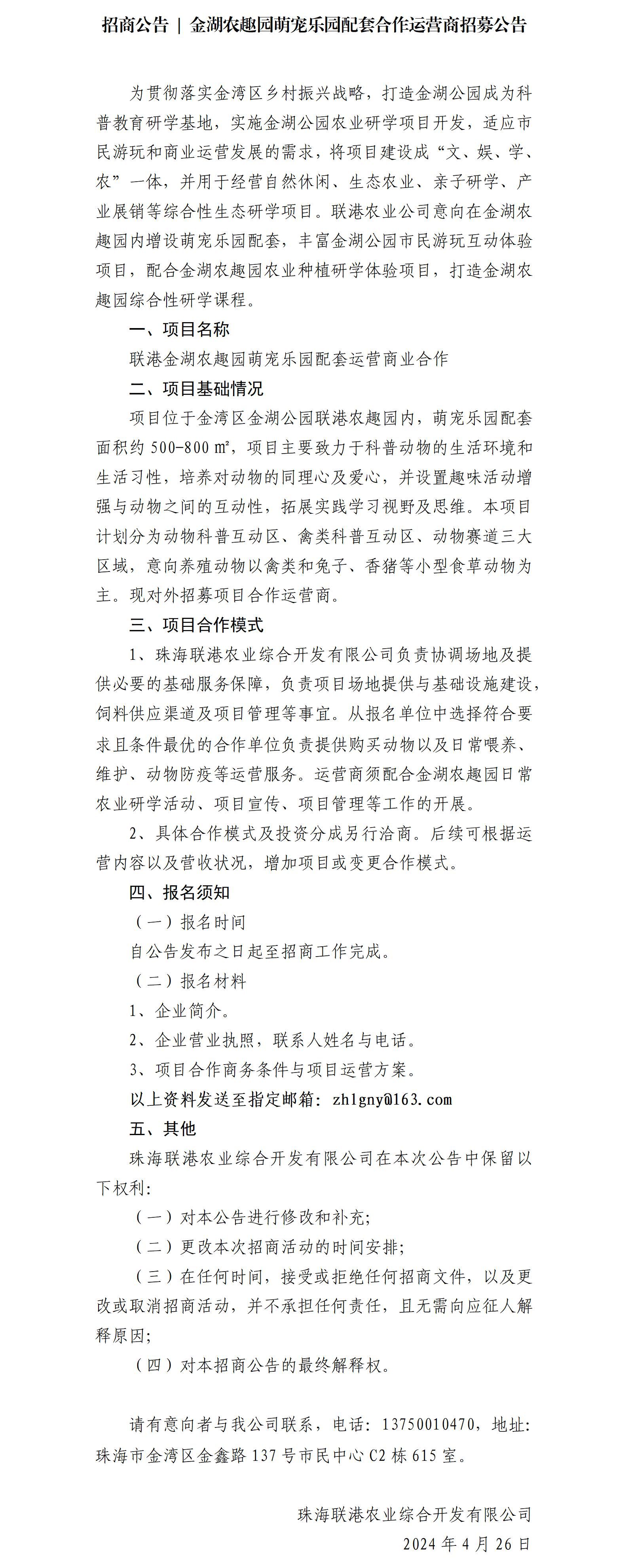 招商公告 | 金湖農(nóng)趣園萌寵樂(lè)園配套合作運(yùn)營(yíng)商招募公告