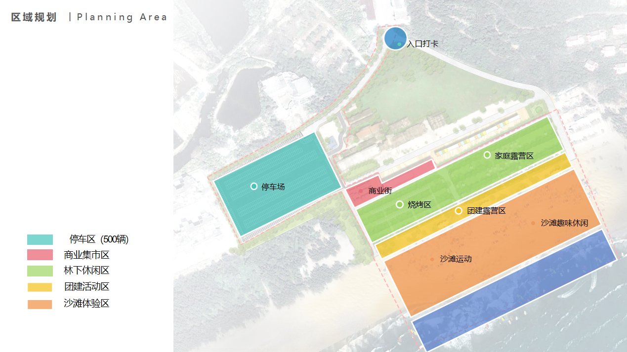 營(yíng)地共設(shè)4個(gè)功能區(qū),商業(yè)集市區(qū)、林下休閑區(qū)、團(tuán)建活動(dòng)區(qū)、沙灘體驗(yàn)區(qū)(具體功能分區(qū)詳見附件一)。本次招商活動(dòng)主要針對(duì)商業(yè)區(qū)。