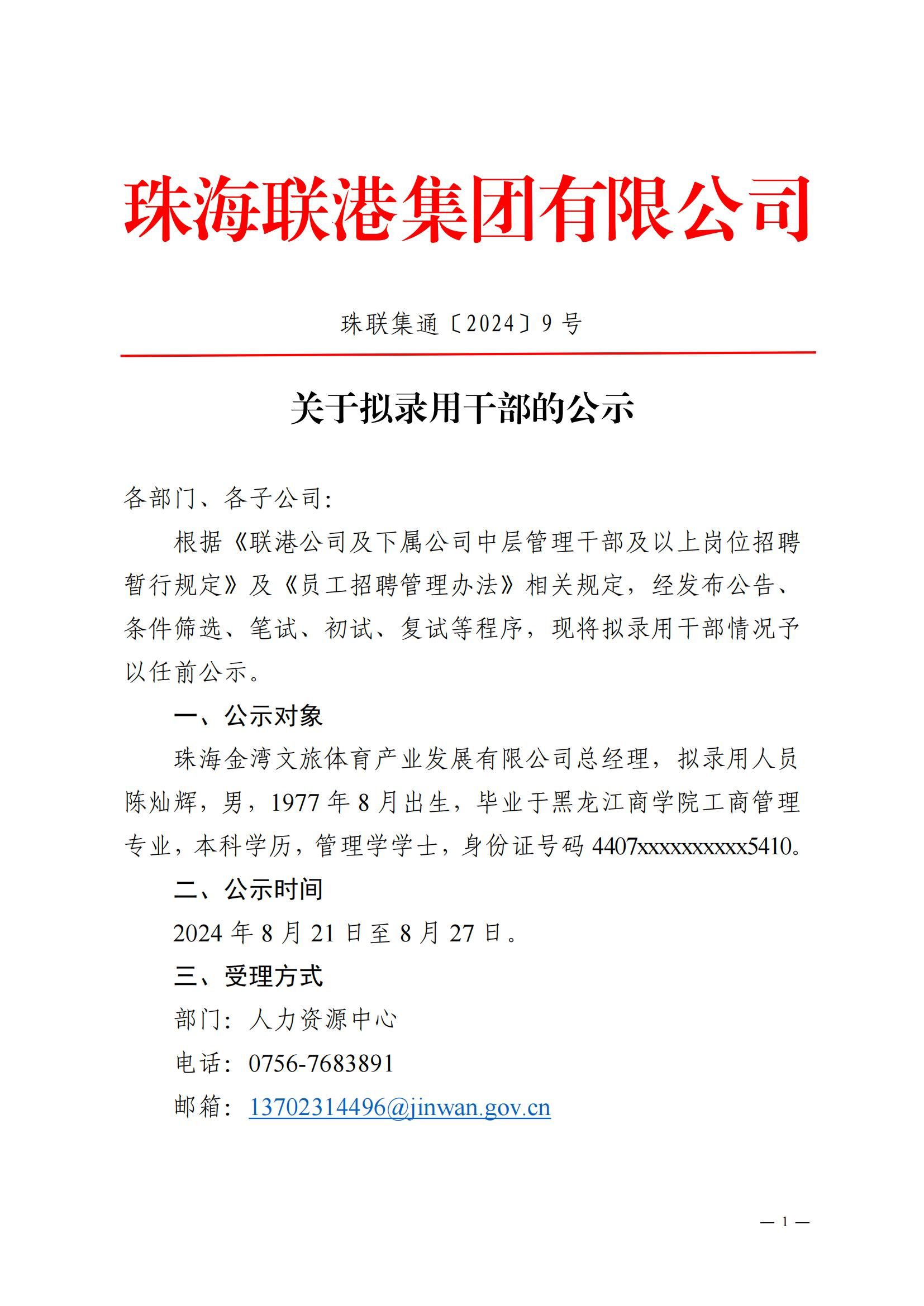 珠聯集通〔2024〕9號 關于擬錄用干部的公示