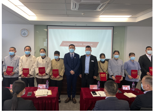 會(huì)上,龍總與資產(chǎn)公司班子成員對(duì)獲得2021年度優(yōu)秀員工、崗位標(biāo)兵和疫情防控先進(jìn)個(gè)人稱號(hào)的代表頒發(fā)了證書,并在會(huì)后同他們親切合影留念。